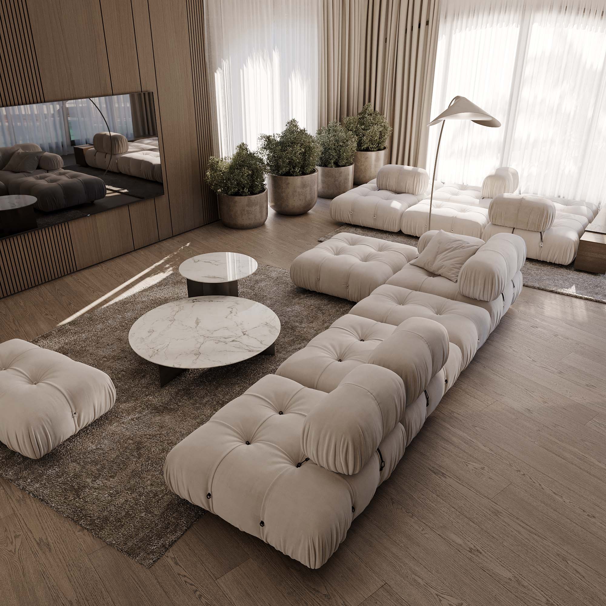 Presenting a distinguished project situated in Saudi Arabia: a private residence spanning approximately 950 square meters. This design is imbued with contemporary touches, with every corner meticulously highlighted. The interior boasts a palette of timeless nude hues, ensuring its trendsetting appeal for years to come.